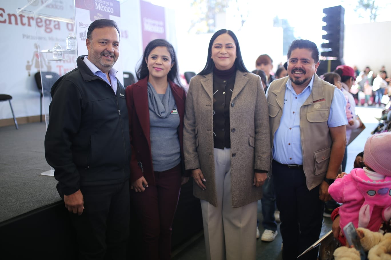 En el evento también estuvieron presentes el delegado de Programas para el Desarrollo en Michoacán, Roberto Pantoja Arzola, así como autoridades federales y municipales, quienes coincidieron en que estos apoyos forman parte de una política social que busca garantizar mejores condiciones de vida y mayores oportunidades para las familias de Pátzcuaro.